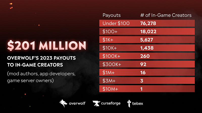 Since 2010, Overwolf has worked tirelessly to build the ecosystem for the in-game creator economy through our industry-leading tech stack that supports passionate gaming modders, app developers and private server owners. And so it gives us great pleasure to share with you that this year we paid out $201 million to in-game creators, a 25% increase over last year, across our various platforms.