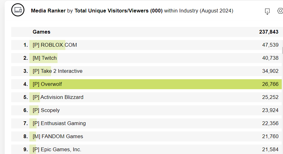 In an exciting update, Overwolf has surged to the top of Comscore’s U.S. Gaming Properties list for August 2024, alongside industry giants Twitch and Roblox. Overwolf’s rise to 4th spot in the rankings marks a significant milestone, as it outpaced other major gaming platforms Activision Blizzard, Fandom, Epic Games, and Enthusiast Gaming, following a 20% month-over-month growth in reach.